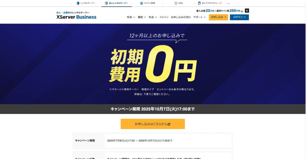 2025年10月7日まで初期費用(通常16,500円から385,000円)無料 & サーバー移転代行無料