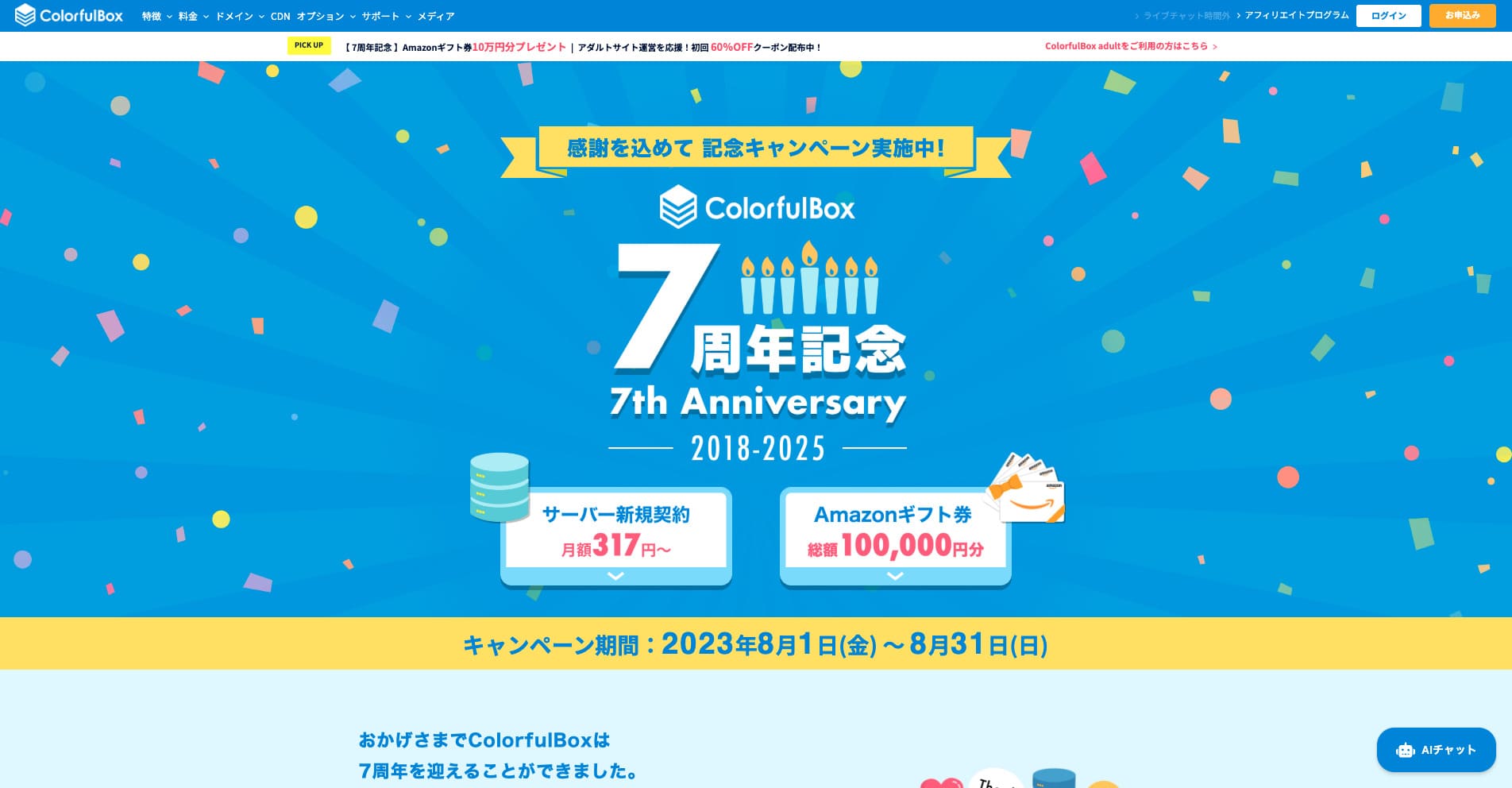 2025年8月31日までサーバー代最大50%OFF & Amazonギフト券最大1万円分プレゼント & 30日間無料お試し